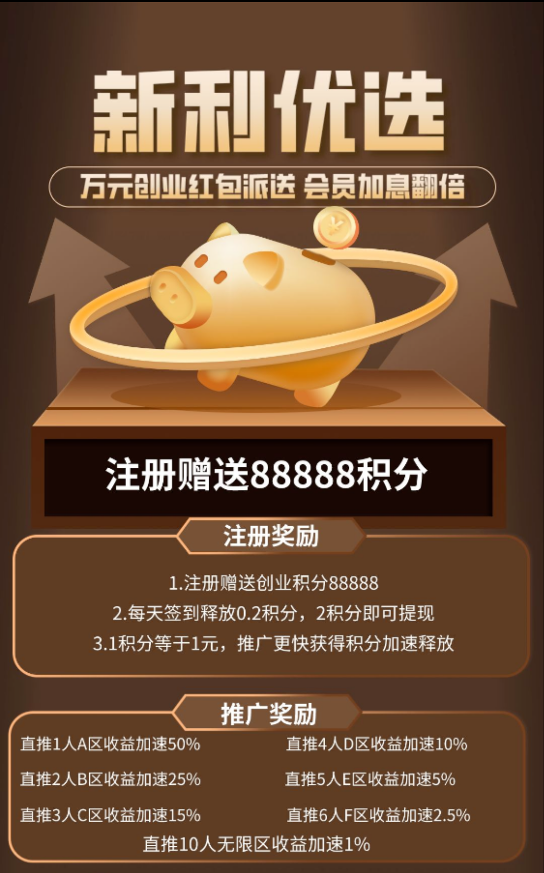 正文 新利优选首码,注册送奖励,无限滑落收益,每天只签到 白小纯 V评论者 /2023-11-15 22:05:13/1.53 K阅读/0评论 1115 新利优选首码,零撸注册送88888积分,1比1提现,每天签到释放,无限团队收益第一批吃肉2元起提秒到,推10人无限代收益