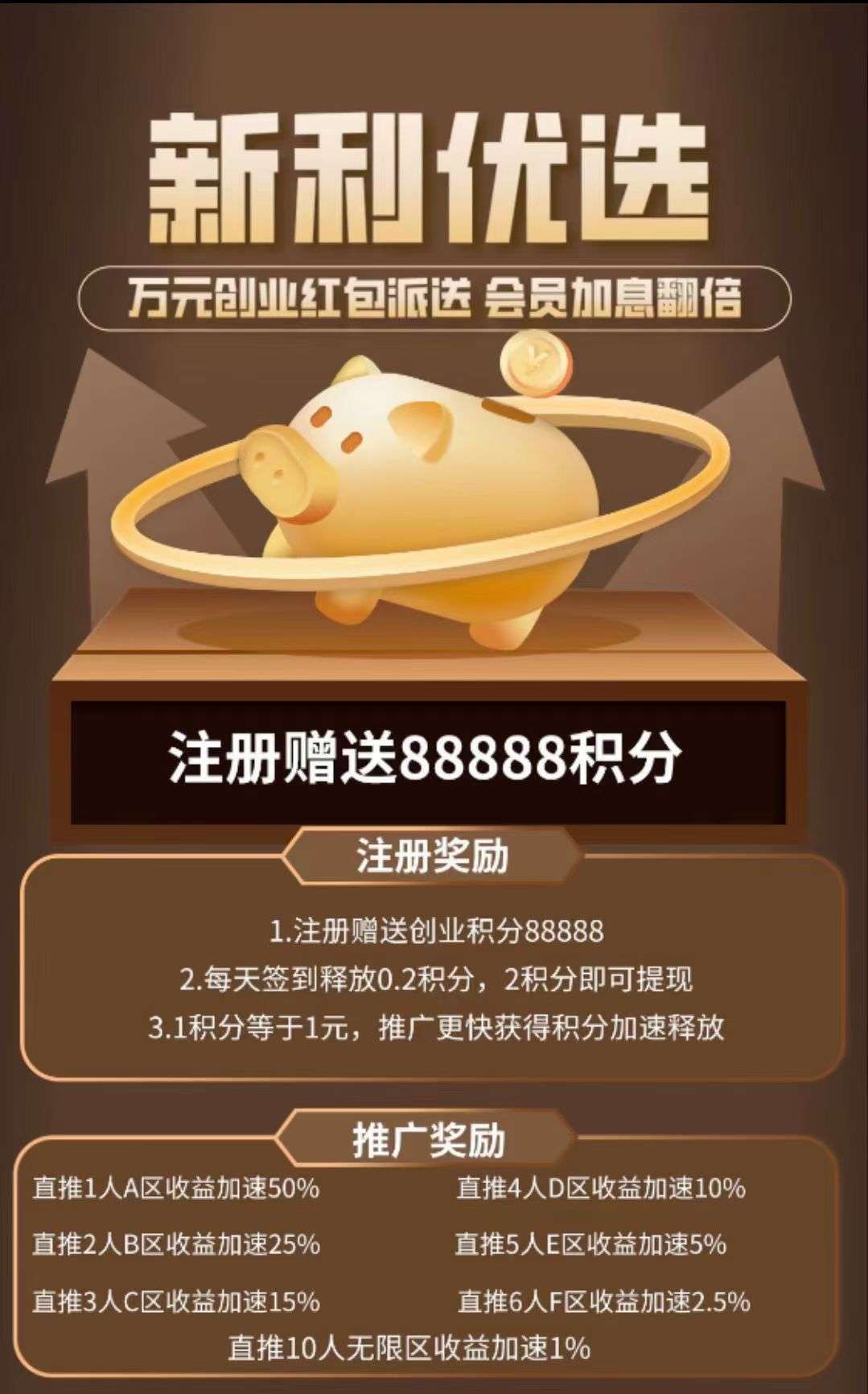 正文 新利优选首码,零撸注册送88888积分,签到释放1比1提,邀请好友加速释放 白小纯 V评论者 /2023-11-17 08:53:10/1.55 K阅读/0评论 1117 新利优选首码,零撸注册送创业88888积分,积分1比1提现,每天签到释放,邀请好友加速释放创业积分,无限团队收益第一批吃肉2元起提秒到,推10人无限代收益