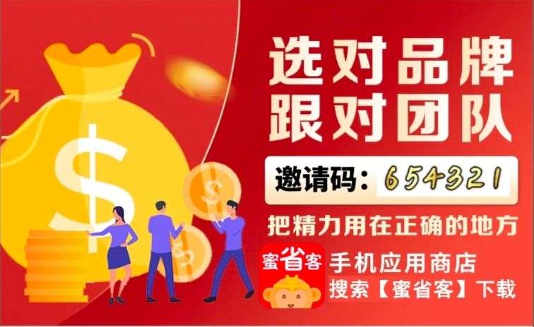 蜜省客邀请码:654321(6到1),扶持打造100个年入百万团队长IP。