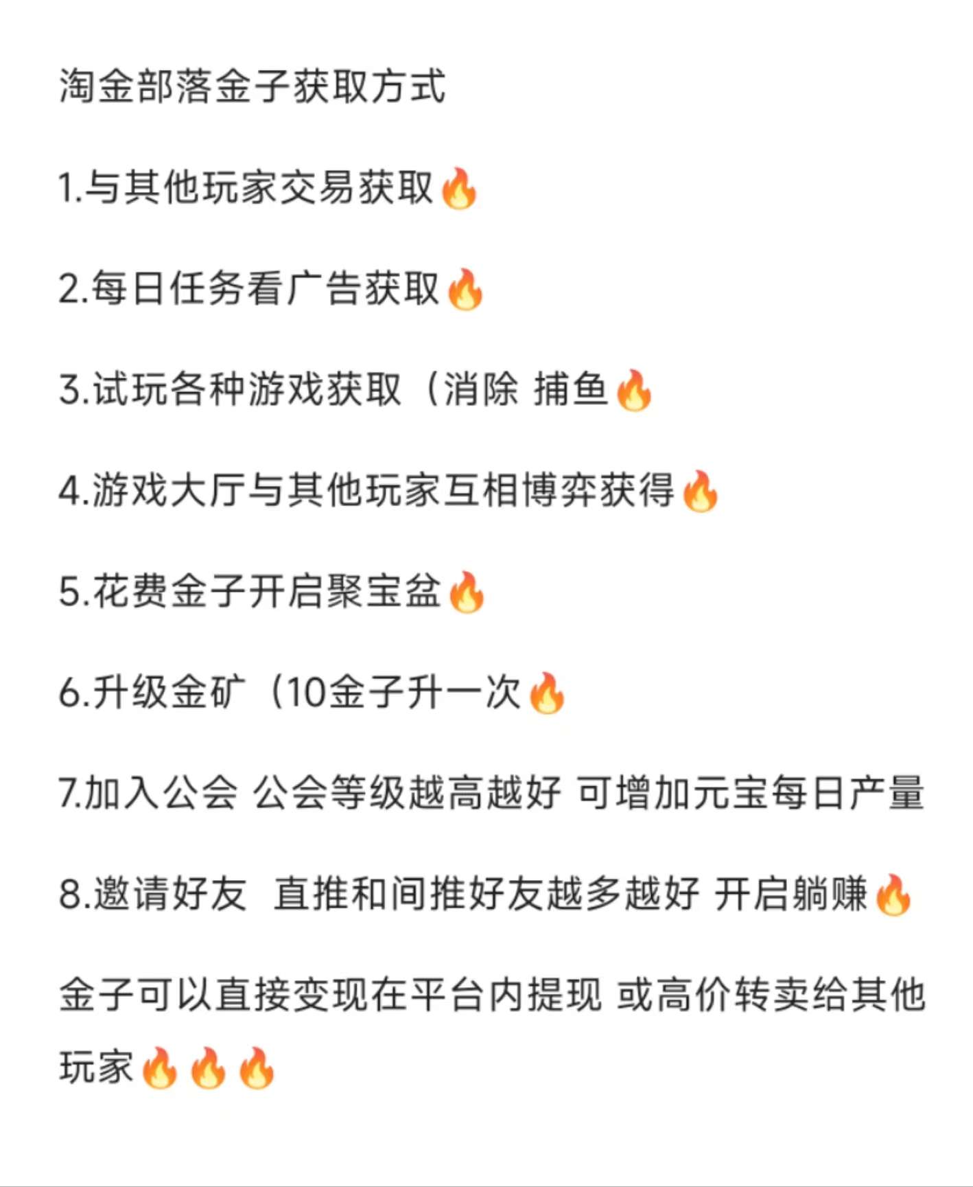 正文 淘金部落注册送金旷,看广告得金石,金旷可jy可直接提 白小纯 V评论者 /2023-11-20 22:31:27/1.83 K阅读/0评论 1120 淘金部落注册送金旷,看广告得金旷,金旷可交易可直接提现。1.与其他玩家交易获取2.每日任务看广告获取3.试玩各种游戏获取(消除 捕鱼4.游戏大厅与其他玩家互相博弈获得5.花费金子开启聚宝盆6.升级金矿(10金子升一次7.加入公会 公会等级越高越好 可增加元宝每日产量8.邀请好友 直推和间推好友越多越好 开启躺赚金子可以直接变现在平台内提现 或高价转卖给其他玩家