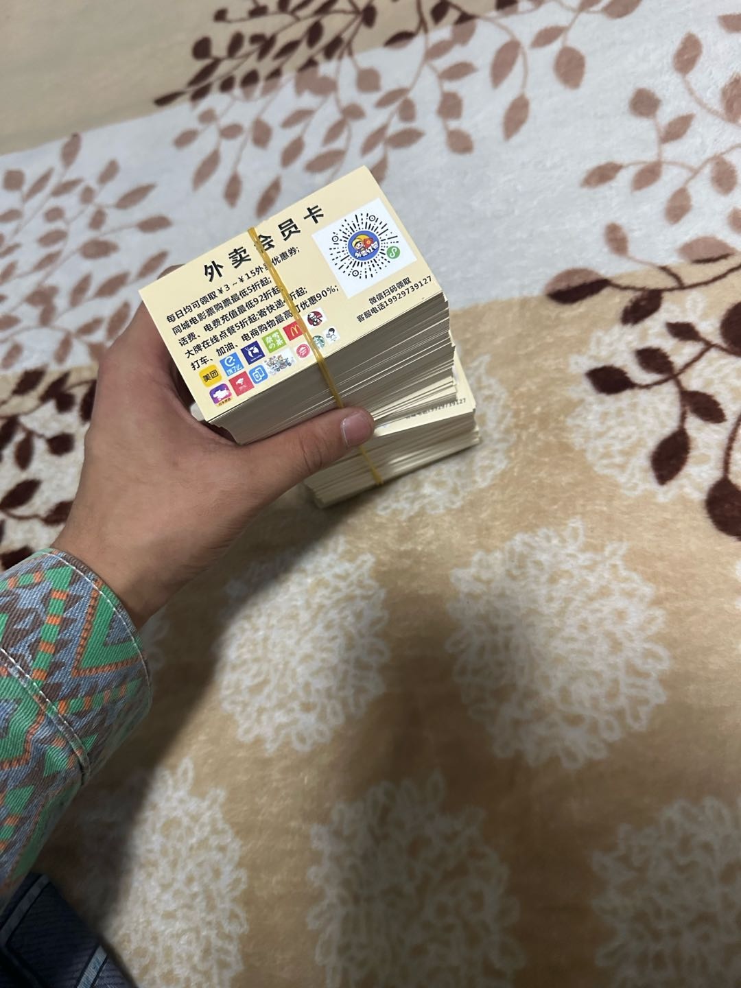 外卖卡业务就是别人通过你的海报扫描后叫外卖,看电影,打车,寄快递,充话费电费等生活刚需业务后会获得5到20的优惠卷而你自己会获得.05到15的佣金高佣金