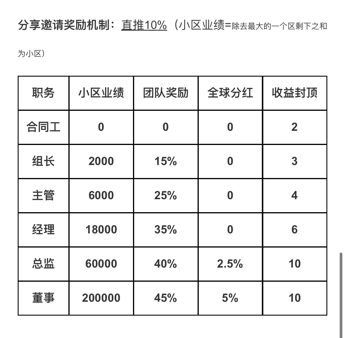 新人注册扶持 72 元捐赠额度;通过邀请制链接打开钱包进入系统,捐赠 72可参与一阶段,每天签到可得1.5%-2.5%的收益,上线十几天已涨47倍,目标100 倍,当全球捐赠人数达到一定的峰值时,有机会可拿20971.5 美金。