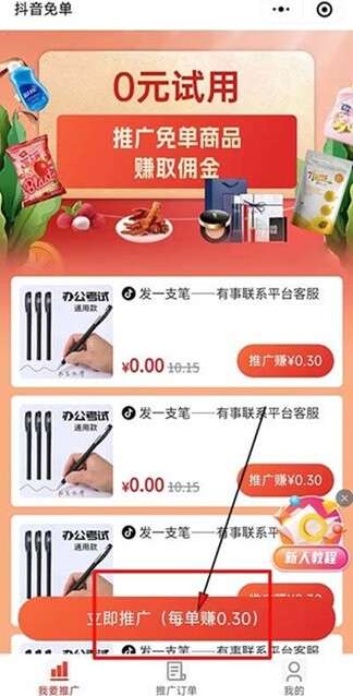 超佣享是一个专注抖音0元购的平台,推广或者自己下单都有0.3元佣金,可以推广也可以自己搬砖,搬砖需要垫付,选择1单3块钱左右的,每天100单就是300块钱的本金,每单赚0.3,100单利润就是30,本金要等确定收货后到小程序去提现,一般周期就是3-5天。