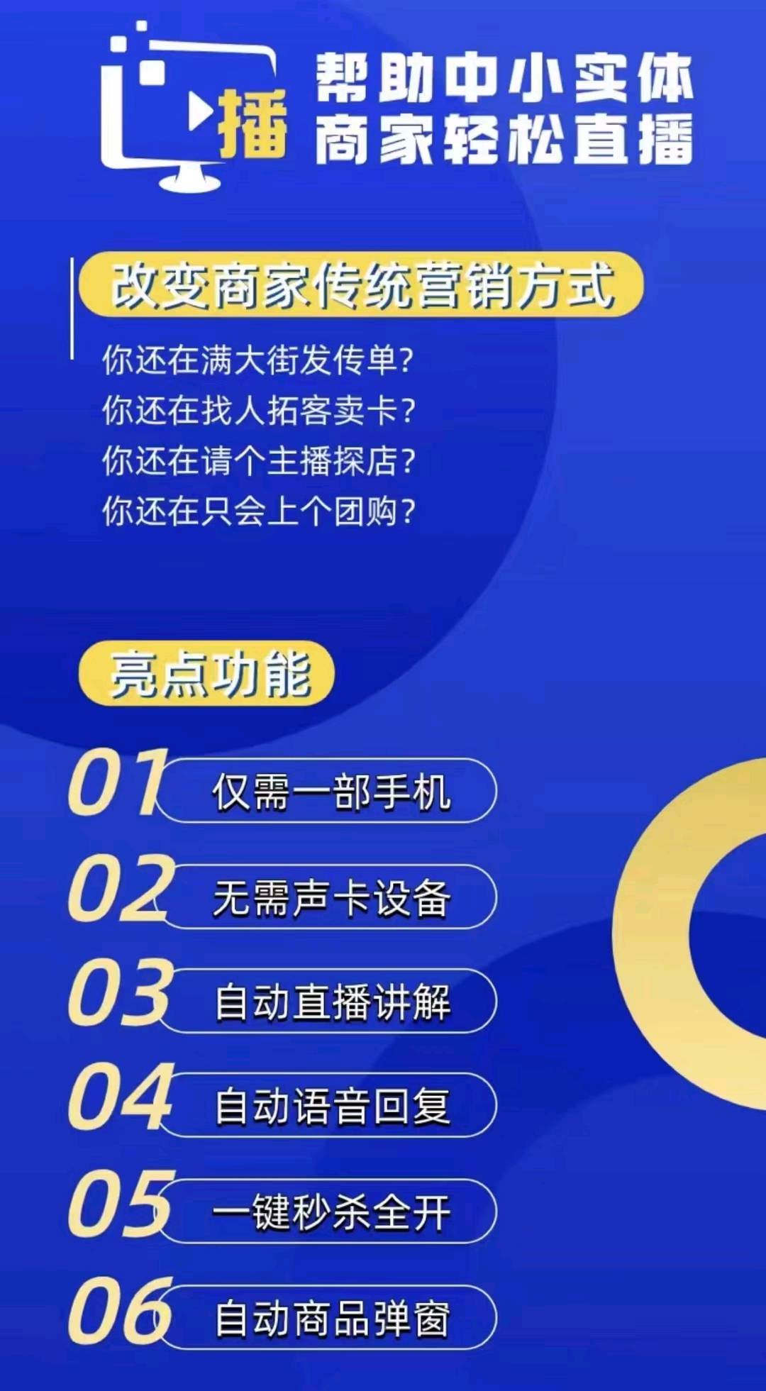 正文 实景24小时无人直播 接单网 V评论者 /2023-12-01 11:30:10/2.32 K阅读/0评论 1201 实景24小时无人直播项目介绍无需真人出镜,只用一部手机即可完成24小时直播宣传。适合餐饮店、烧烤店、奶茶店等中小型门店。公司提供技术支持,只需少量账号费用,一个店铺推广即可赚取千元左右。合作要求有经验的地推团队,有资源的网推团队,个人均可。收益利润980元-1980元费用说明账号服务费198元扶持培训提供后台技术支持,可线下到公司总部学习。