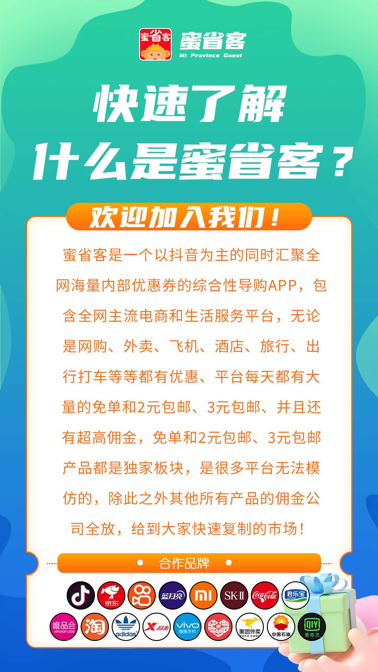 蜜省客APP(0撸还返利)——是与以往完全不同的抖客+淘客app!2023全新模式。主打:带货高补贴,佣金更高,独立后台管理,模式更好,深受各位带货和带队团队长喜爱,蜜省客是公认的返利最好用的软件。注册即可享受高补贴+0撸还有返利+捡漏等带货新体验。蜜省客原始邀请码008800,教你做团队。