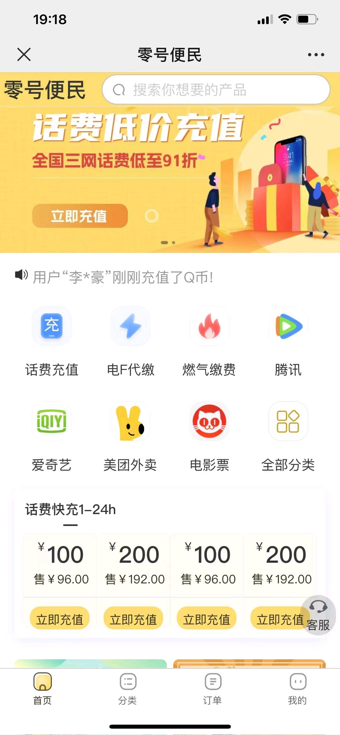 零号综合平台(电话费,电费,燃气费,加油卡,流量卡,旅游卡,折扣卡,美团等)于一体的便民服务平台