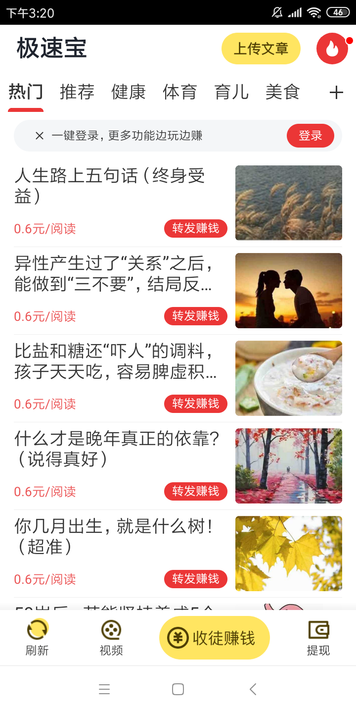 极速宝宝app安卓版是2024上线的最新转发文章赚钱软件,大家可以用来转发文章疯狂搬砖,大家都在这个极速宝app有很多好看的文章以及视频,只要你每天分享文章都能赚到零花,收益不封顶,10圆起微信提取,18以前当天到达哦!