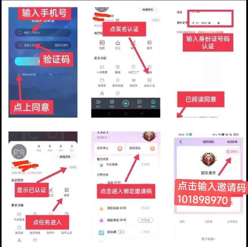 ②、下载后短信登录绑定好邀请人再认证,认证要刷脸,无认证费。