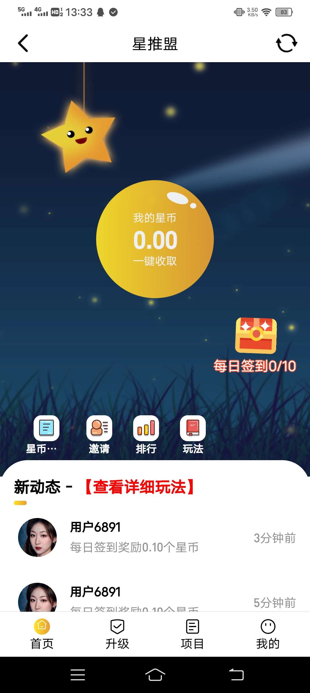 正文 星推盟简单零撸芬红项目 注册就送星币,全网首码,早上车早吃肉 白小纯 V评论者 /2024-01-11 14:02:26/1.51 K阅读/0评论 0111 星推盟简单零撸芬红项目注册就送1.00星币,价值0.26元每天签到,给1~5星币一个月签到,150个星币,150x0.26=40元一代30%星币,二代20%星币全网首码,早上车早吃肉,每天最高分红40元