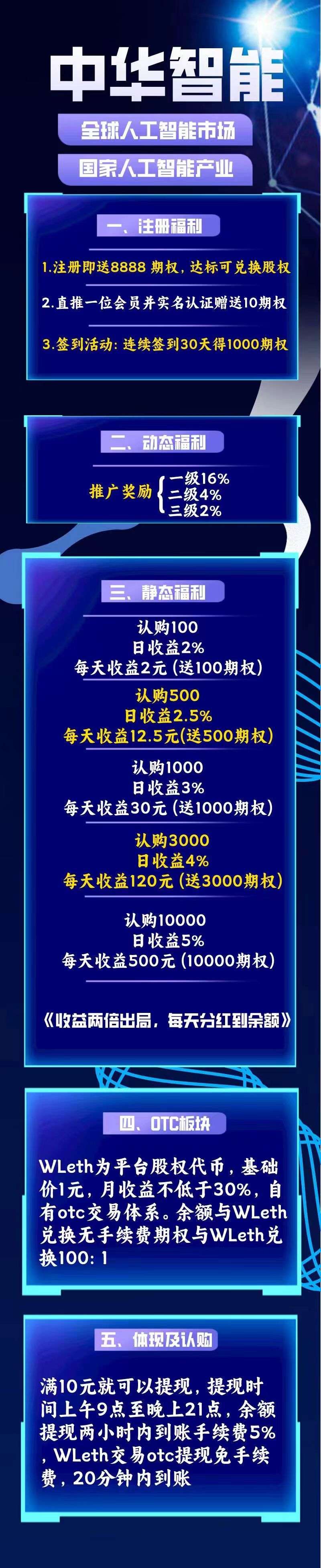 WLeth为平台股权代币,基础价1元,月收益不低于30%,自有otc交易体系。余额与WLeth兑换无手续费期权与WLeth兑换100:1