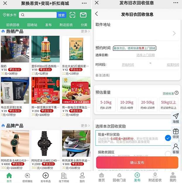 不要的旧衣服可以直接换钱,积分可以折扣买东西。