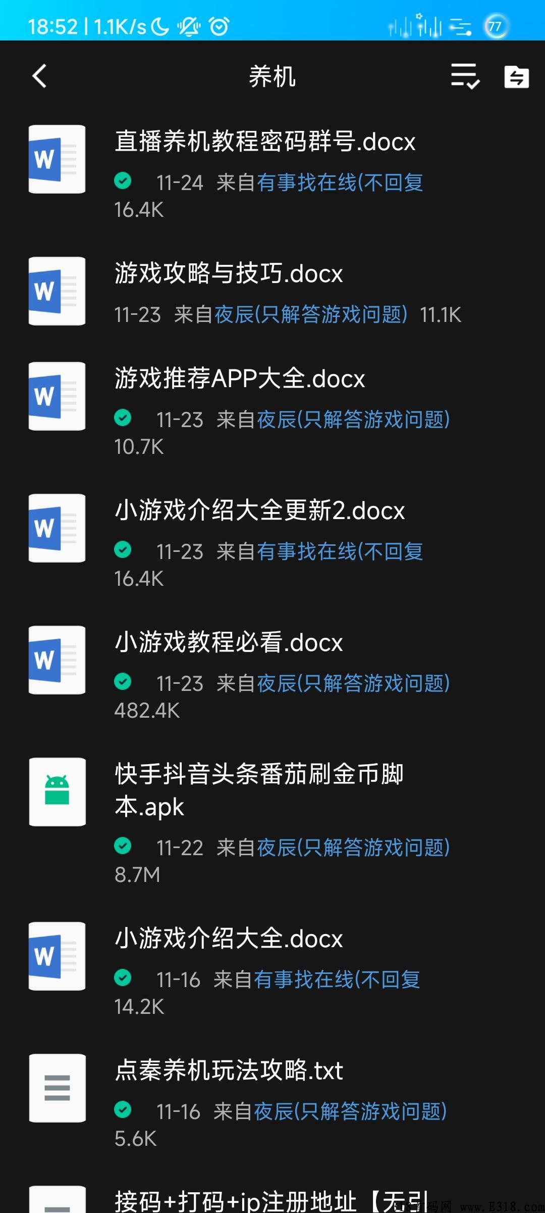 当然还有养交友,直播,快手商业 ,串串,小程序,单广告等教程,具体不在这里多说了。可以进群看群文件教程。