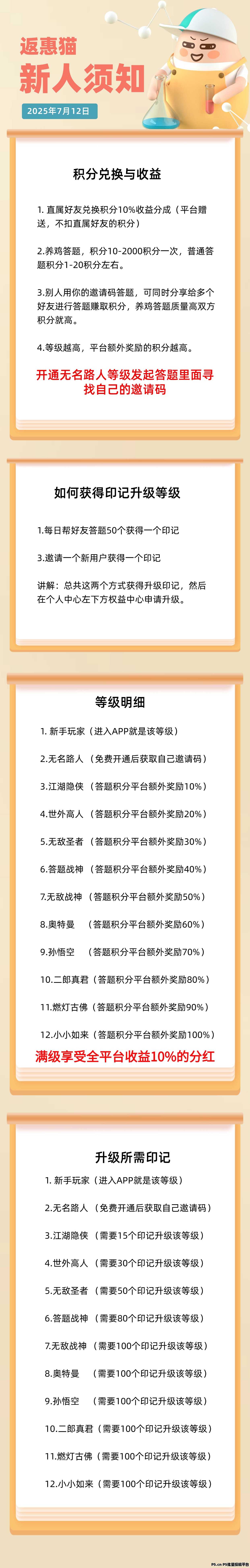正文 返惠猫答题赚米不养机,互答赚米 zhuzi123000612 V作者 /2025-10-06 21:47:23 /44 阅读 1006 答题赚积分在互答群里和输入答题码互答同时双方互的积分一千积分等于一米每次互答积分最高在100到1000左右提升等级可以获得额外的积分加成每次获得积分都额外获得百分之十加成下级提成下级每兑换一次你能拿到百分之二十积分提成以此类推!