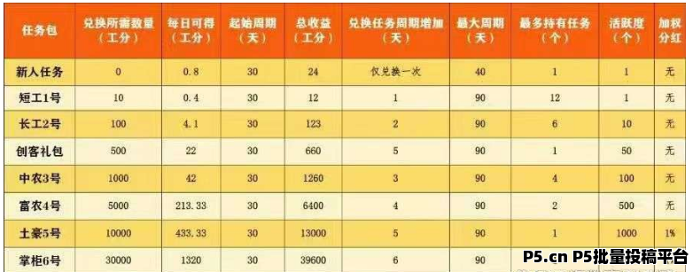 24×20=480公分第一年,480×20=9600公分第二年,9600×20=192000公分第三年,最高就10万公分的任务包,复投两年半就满包。按最低公分收益来说15000可用公分每月,7.5万每月,只要平台在,就可以一直拿。