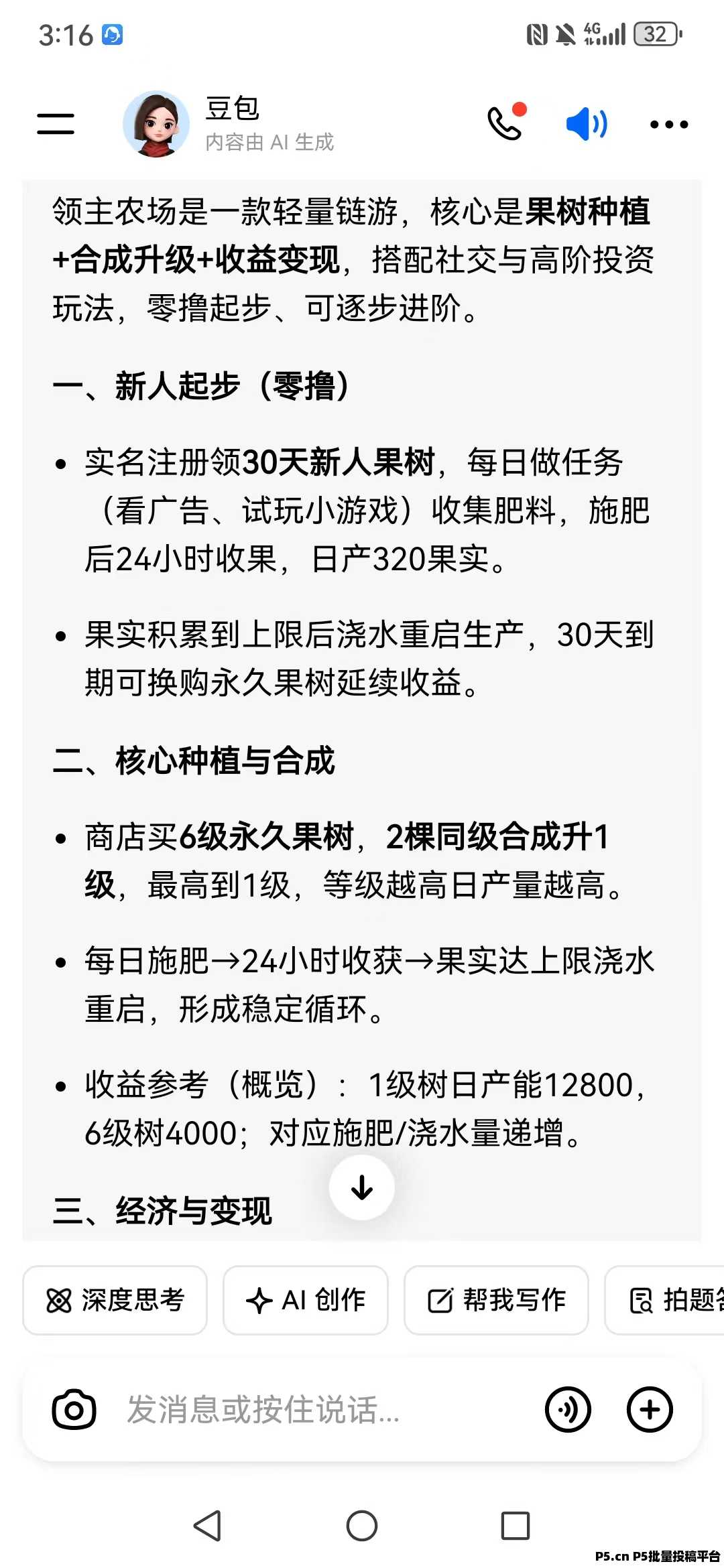 正文 领主农场,首码刚出,零撸项目 机你太美0002612 V作者 /2026-01-22 22:09:35/937阅读/0评论 0122 领主农场是一款轻量链游,核心是果树种植+合成升级+收益变现,搭配社交与高阶玩法,零撸起步、可逐步进阶。零撸玩法:1.扫码下载,VX或手机号登录,实名后送一个新人果树2.看肥料广告领取肥料3.点新人果树施肥等待收获果实4.果实售卖得银锭,银锭兑换钞票,钞票转赠商人(果实售卖需要铜板,集市大约2分钱一个)5.零撸玩家也可参与试玩快速获得银锭6.钞票价格1米,10个起赠送,官方Q群:7688879568.邀请码:41960407