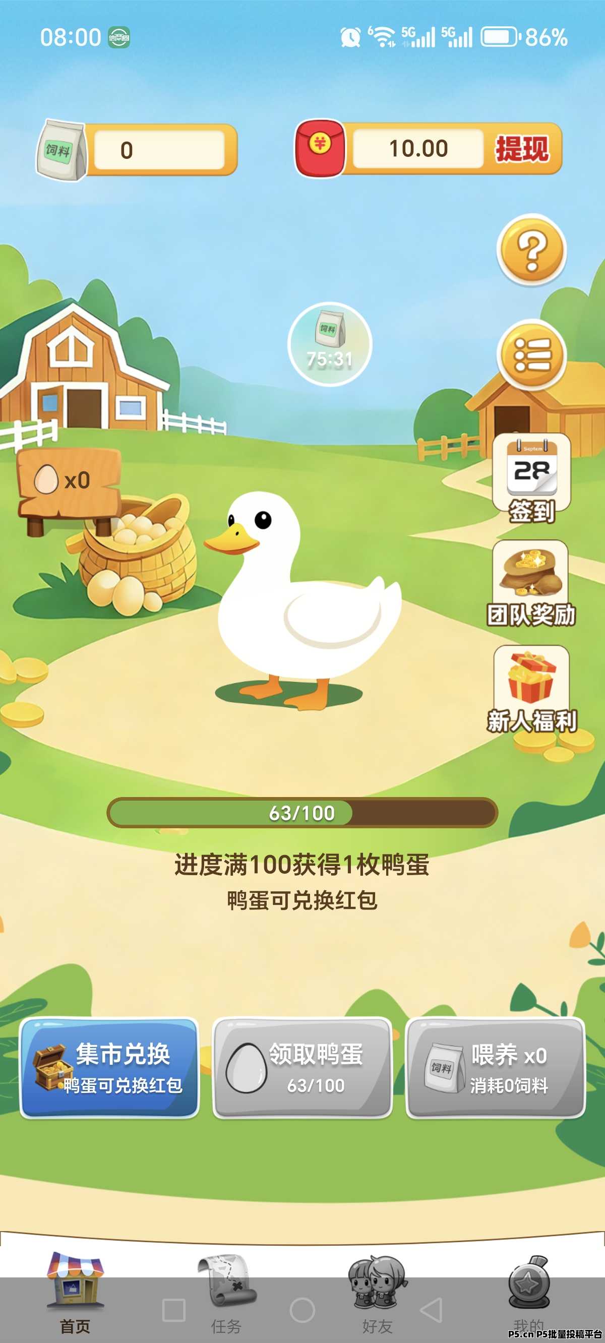 正文 零撸天花板鸭鸭庄园上线,免费养鸭 人脉000273 V作者 /2026-03-04 12:30:08/1.17 K阅读/0评论 0304 零撸天花板鸭鸭庄园上线!免费养鸭,鸭蛋10 元/枚,提现稳!签到得红包,看广、邀友领饲料,好友看广你躺赚饲料。喂鸭产蛋秒变现,适合引流平台、直播推广,多推多赚无上限。复制链接直达,邀请码26715328,零投入开启副业
