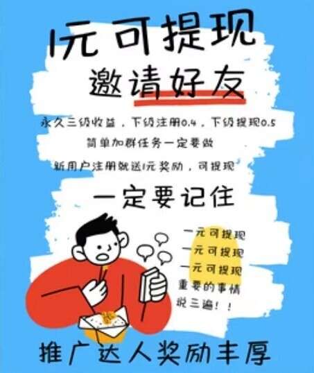 首次任务额外奖励0.2元、上级分佣0.2元,首次提现额外奖励0.2元,上级分佣0.5元,2元起提。