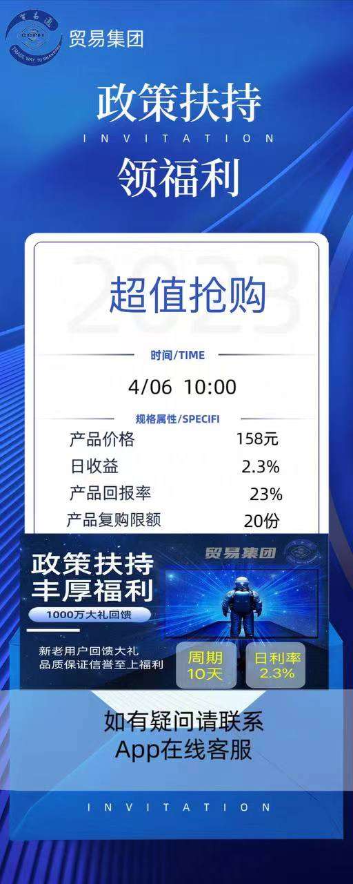 正文 4.3日贸易通,重磅上线,注册就送一年大礼包,每天签到领奖励,公司可实地考察 清墨 V评论者 /2023-04-06 15:04:24/1.81 K阅读/0评论 0406 贸易通 4.2号全网上线,可实地考察! 绝对全网最多福利 跨年长期格局平台各项活动现金送送送 下级认购奖励:1级 :12%2级:3%3级: 1%下级收益分红1级:4%2级:2%3级:0.5%全网第一福利,日赚百元秒提现!网页版链接:www.maoyitong9999.com安卓下载链接:http://www.maoyitong8888.com/#/crow/login/login/#/?x=1&id官方邀请码:8033640