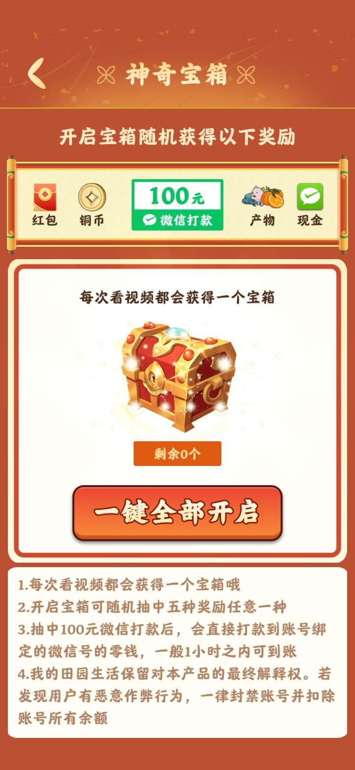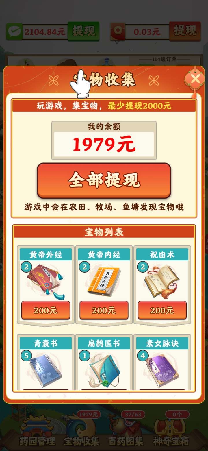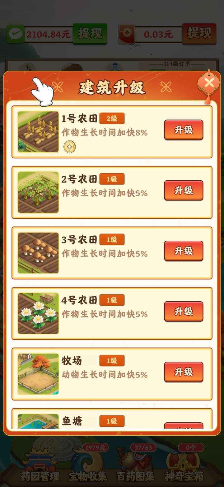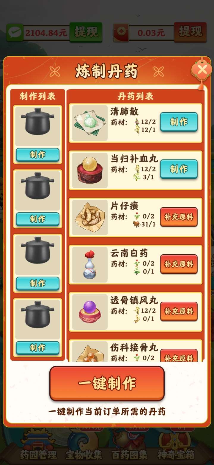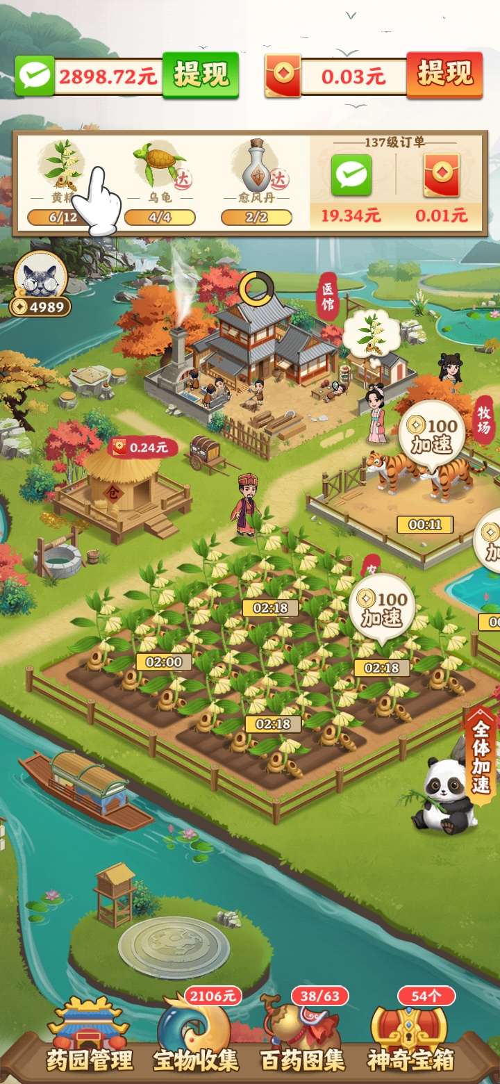 4月5号首码我的田园生活,平台多元化玩法,多元化赚米,游戏包括种药材、养牲畜、养鱼类、炼丹、宝物收集、百药图集、仓库的物品还可以出售,等等玩法,想长期赚米的先看看我推荐的攻略:先把丹药全部解锁,边种药材养鱼养牲口,然后点全体加速,反复来玩升级还蛮快的,游戏走过的路人有需要的可以点击领取,升级更快,前期有些枯燥乏味,适合长期赚米,游戏一共四个提款玩法,每个提款玩法都是相互相成的,要有耐心玩到76级收益可观,提款秒到微信,总体来说不错的毕竟零撸,领扶持的进群每周天晚20点统一登记,76级返50,101级返100