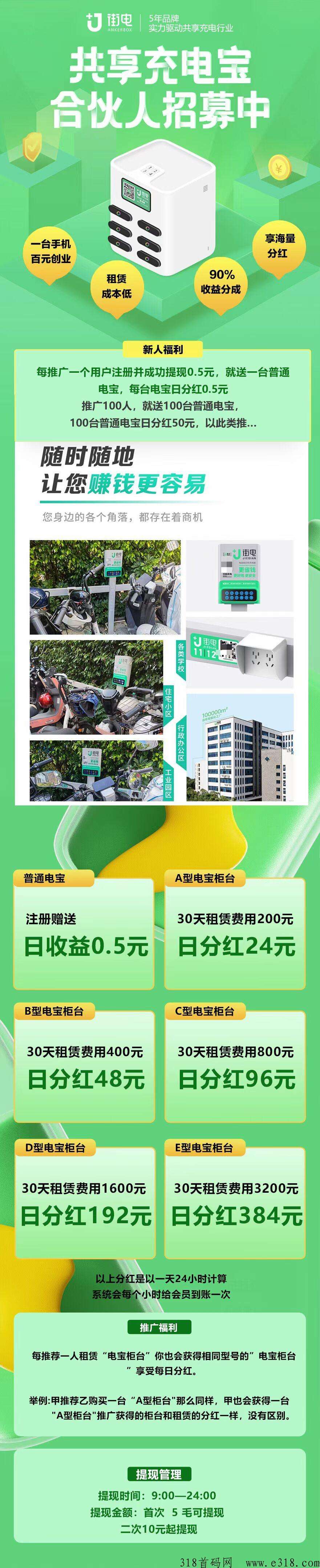 首码项目街电充电宝刚出一秒,注册送小柜机每天白嫖,无门槛提现秒到,跟上吃肉。
