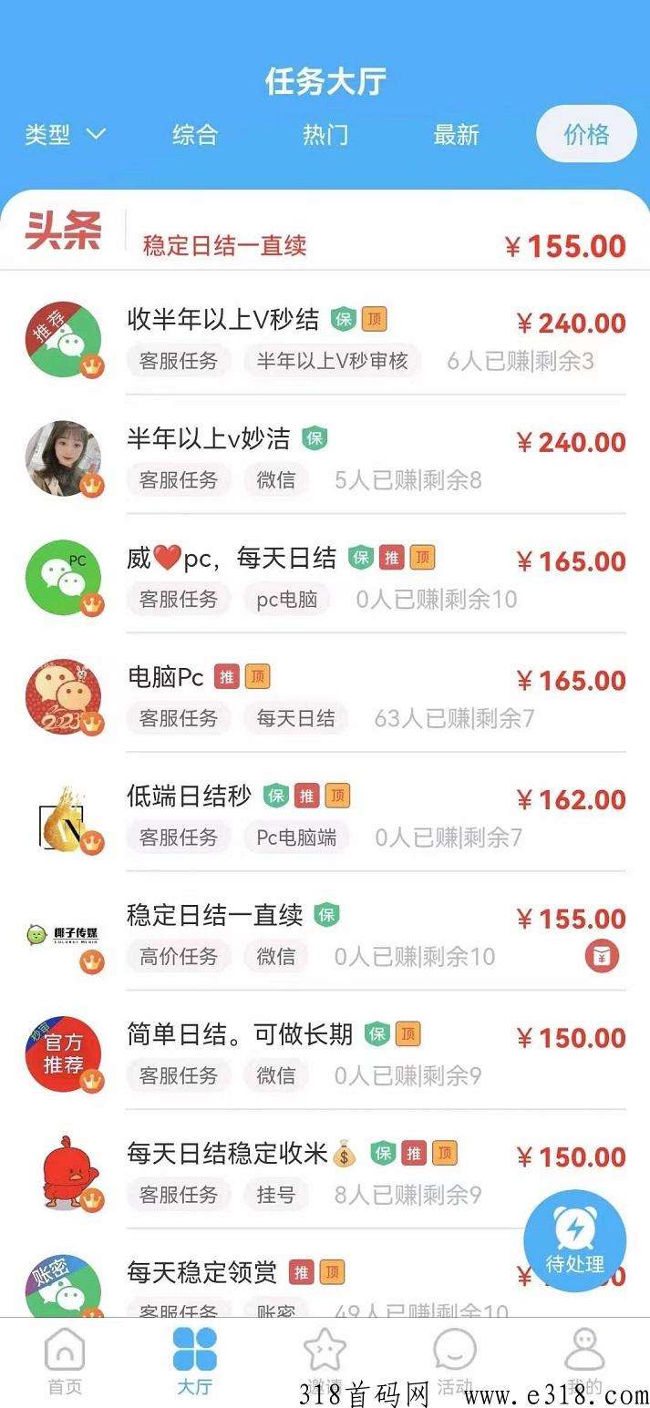 刚出的最新平台,推广收益一天有200多,自己玩里面也有大量高价任务,简单粗暴 可以发客服任务。