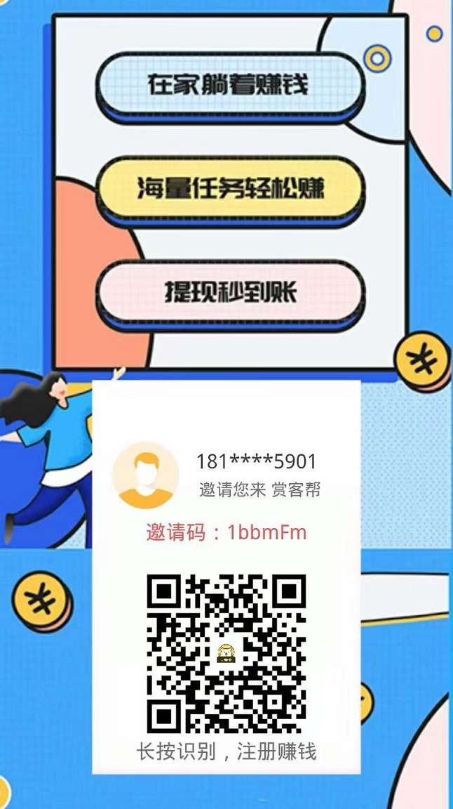 赏客帮,新出任务悬赏平台,主打高价任务,任务多佣金高,极速审核,直推首次提现奖5元,第二天提现奖2元,第三天奖5元,第4天8元,第5天12元,邀请提现任务达到要求每1人额外奖最低2元,任务永久二级分成,直推4%,间推2%,5元起提无其他门槛。