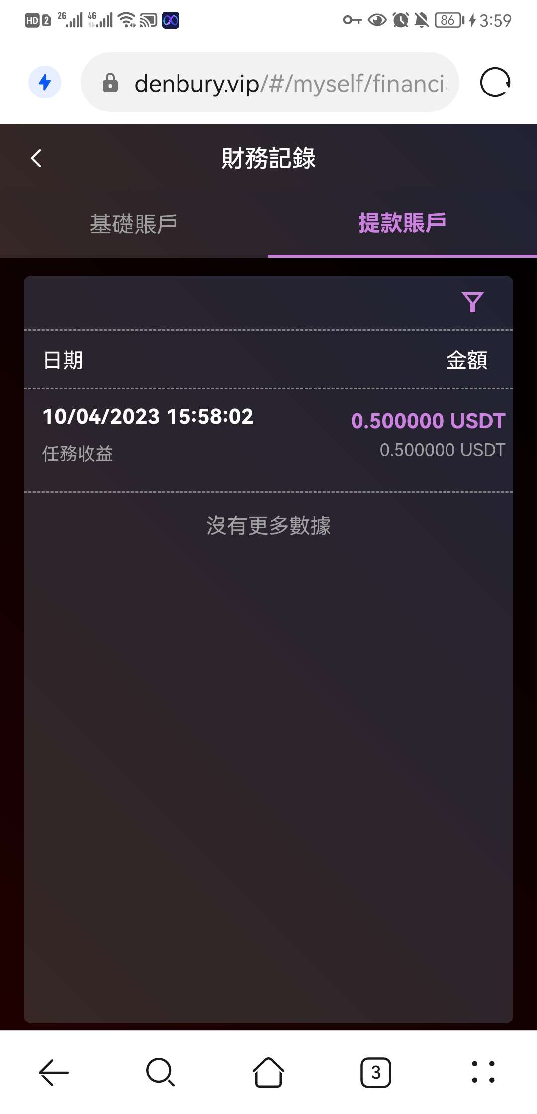正文 首码0撸!注册后每天简单领取0.5U liaocc114 V评论者 /2023-04-10 16:40:59/1.07 W阅读/0评论 0410 注册后每天领取0.5U,无需实名,4天后可提(2U起提)勿投资!注册需要加su器才可以访问https://denbury.vip/?Q874992 打开注册界面,点击右上角可以切换语言注册后简单点击任务就可以领取0.5没有加su器的,可以下载这个免费使用