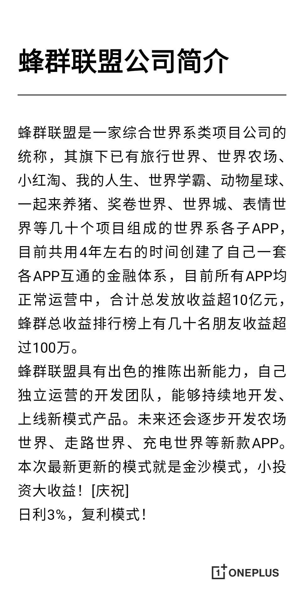 正文 蜂群联盟,潮玩宇宙全新模式,正规APP,分h项目,静*高,限制投入 ctlucifer1 V评论者 /2023-04-21 10:30:03/2.08 K阅读/0评论 0421 福利项目,70起投,不是盘,正规app,蜂群联盟出品。42天可翻倍,纯静*投入350为上限,购买有限额,新人不推广每12小时可买一张,满10张后开始复投满5天以后每月领300利润,抓紧上车吃肉,一对一教学,原来注册过其他蜂群项目的也可以扫码注册从新绑定关系。微信:ppylgfwx