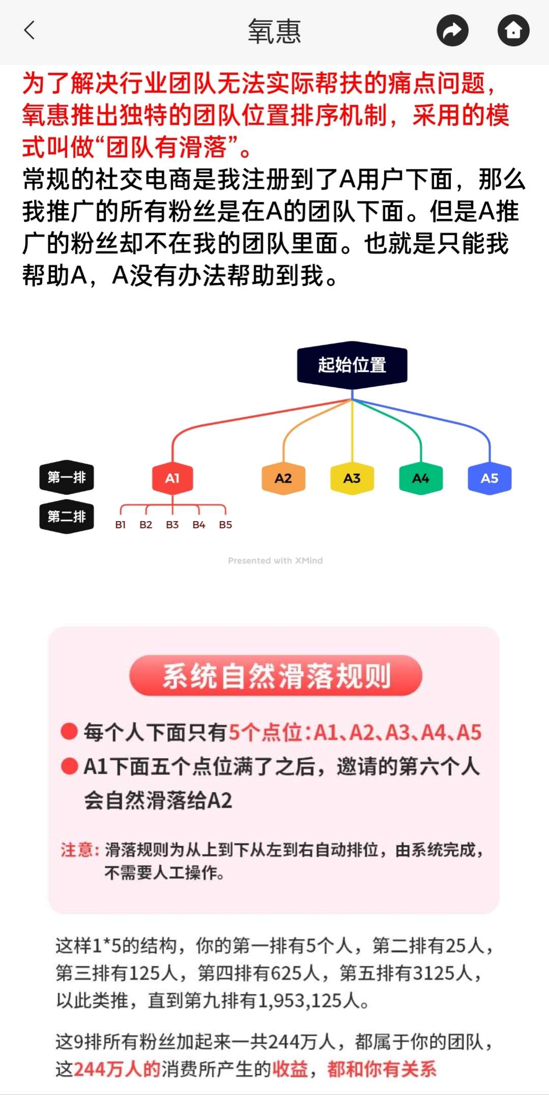 ③.氧惠除了自用省钱之外,还有九层自动滑落功能,也就是除了你推广的下级,你还能够打造九层梯队,获得你下面九层梯队消费返佣。