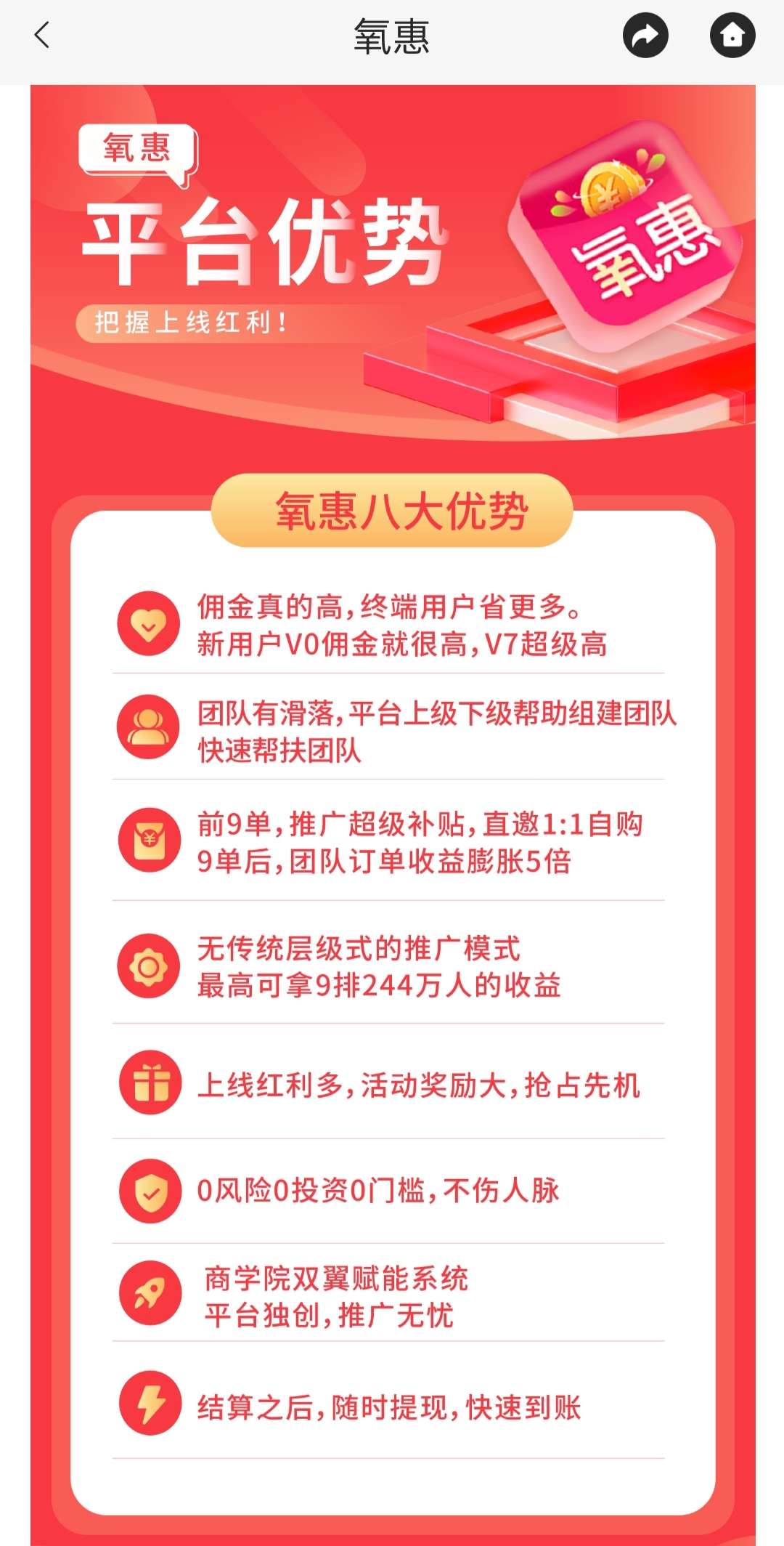 现如今,有很多社交电商平台,可以免费使用,例如蜜源、好省、悦拜等,哪些平台佣金模式好、佣金高呢,听小编慢慢道来,今天跟大家分享一个,很特别简单的创业项目【氧惠APP]不仅没有成本,而且利润还不低,让你实现0成本创业的秘密,前期辛苦一点,给团队做大做强,这不是一个人单打独斗的时代是靠一群人一起完成的,一家人一件事大家一起做,互帮互助,上级与平台帮你组建团队,这就是做氧惠的原理,氧惠平台还有0元购,白撸的,不要白不要,一分钱不投