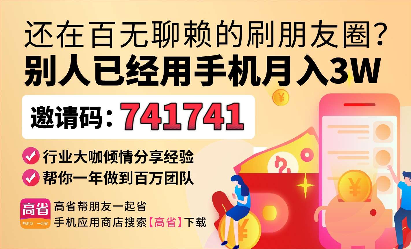 还是那句话,哪来的那么多风口项目啊!!首先佣金确实太低了,比起淘客、抖音团购、连连等项目这个收益率确实很低,也就是不适合普通人做,所以不要被那些收益图给吸引。牛的人做什么都能赚钱,人家赚多少不代表你也能赚。所以不存在什么风口。举个例子,22年底的乐买买项目,很多人盲目跟风说是风口项目,现在还有人在推吗?当时我就讲了,抖券在两年前就有了,根本不是什么风口,而且佣金比高省低多了(应用商店下载高省APP,邀请码填741741 ,可升级双皇冠)