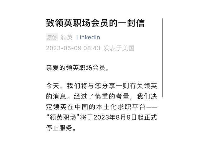 突然宣布:领英职场正式停止服务!LinkedIn领英 在华本土化求职品牌“领英职场”将于8月9日停止服务。#领英