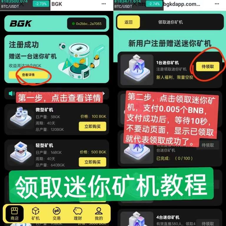 正文 零撸头矿,火速进场占位! BGK全球限量空投100万台迷你矿机 注册赠送一台迷你矿机 为你写诗 V评论者 /2023-05-15 08:30:02/2.52 K阅读/0评论 0515 零撸头矿,火速进场占位!BGK全球限量空投100万台迷你矿机注册赠送一台迷你矿机,为防止机刷,领取时需要支付0.005BNB,迷你矿机可挖出18枚BGK,价值不菲。注册链接https://do.bgkdapp.com/#/?code=XEPBCH复制链接在TP钱包里面币安智能链打开。打开TP钱包→发现→输入DAPP链接即可参与挖矿。BGK合约地址0x6EBb93439E2E443Fb300D0EDa42896438D60Fc5e注册后,联系我 QQ 397817293 拉群!