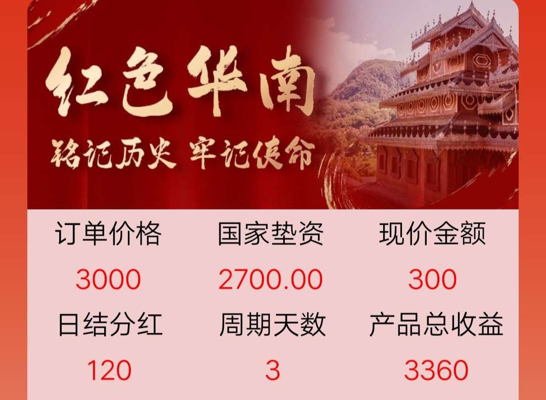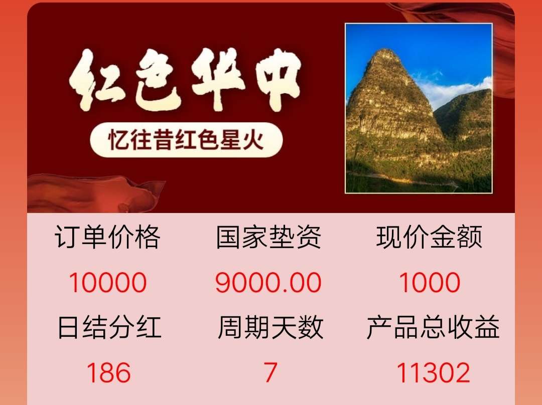 【红色华中】现价1000元,日结分红186元,周期7天。