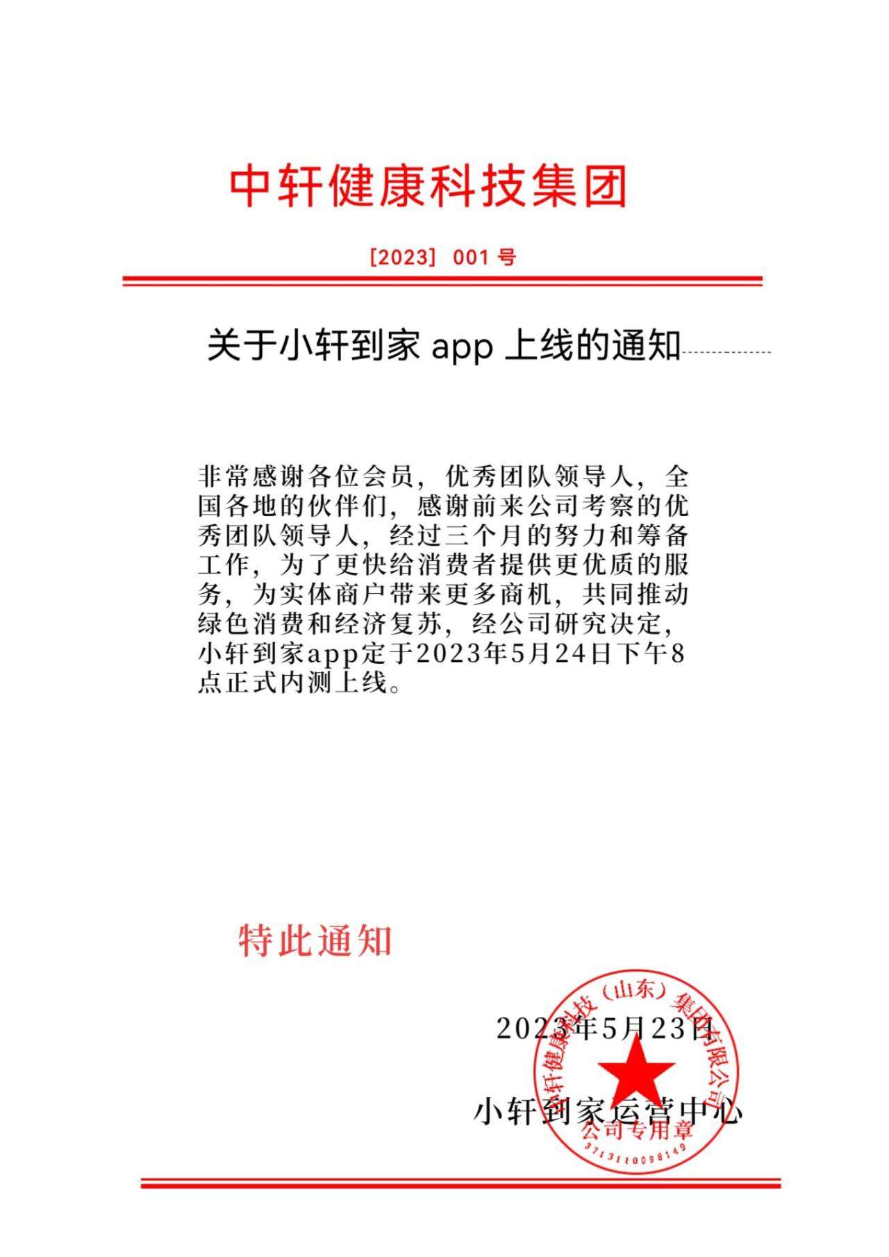 2023年5月份。中轩健康到家服务平台进行正式内测上线,6月份正式上线各大应用商店。