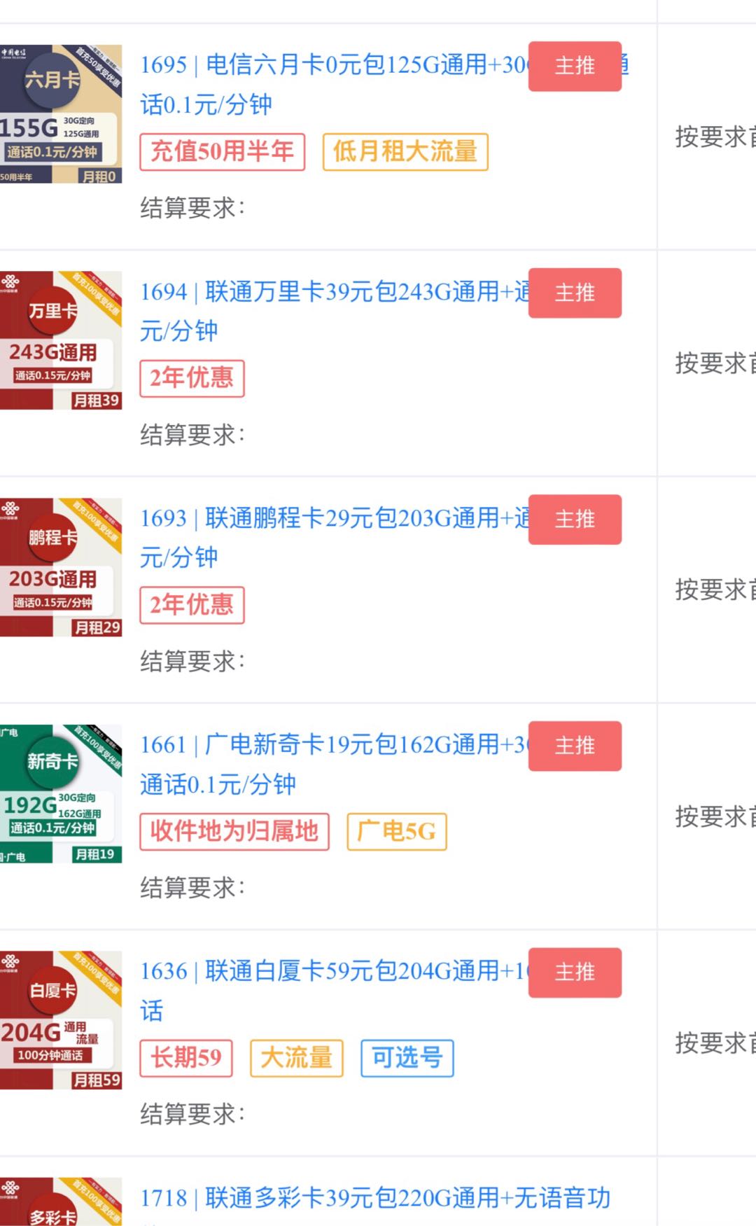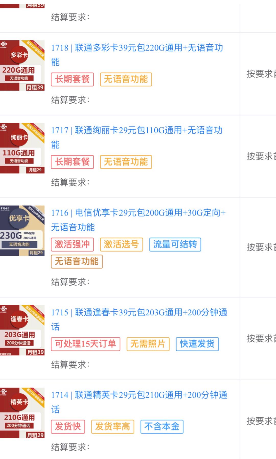 正文 三大运营商流量卡分销 app拉新推广一手接单平台 V评论者 /2023-05-24 04:37:18 /2786 阅读 0524 联通、移动、电信、三大运营商流量卡项目介绍套餐优惠,流量多,性价比高,全国可做,佣金50-200,独立后台合作要求不限制收益利润一次性收益一张50-200费用说明0费用开后台扶持培训次月审核结算 资源图片: