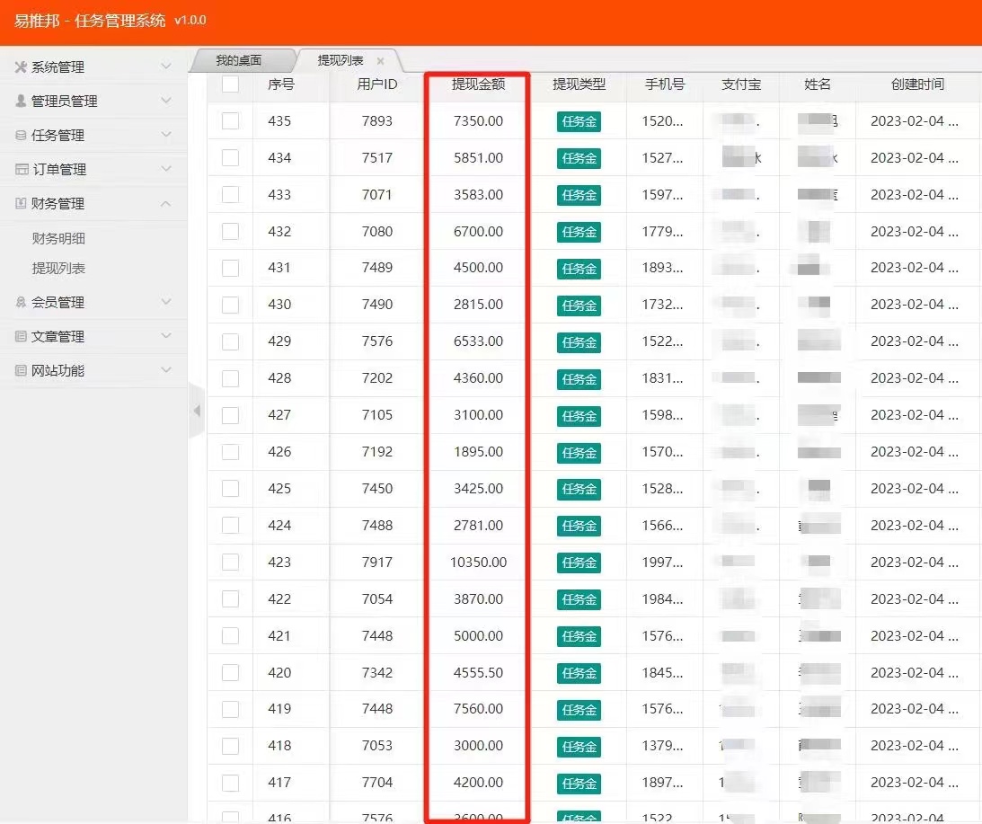 3:靠谱完善的财务结算系统,当天任务当天结算提现。不扣数据,不吃单,实时审核,T+0当天结算不抽佣,没有提现手续费;